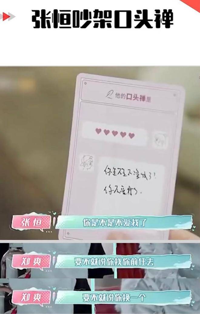 在节目中,郑爽提到张恒最常说的一句话:你是不是不爱我了?那你去找你前任。这句话激怒了在场的所有嘉宾,也引起了全场的不满。然而,在节目中,郑爽和张恒常常给人一种十分恩爱的印象,谁也没有想到,节目结束后,他们的关系会急速恶化。最终,郑爽以2000万借款未归还为由,将张恒告上了法庭,并且胜诉。但张恒不服,双方开始揭开彼此的伤疤。