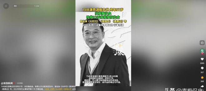 我们常常说来日方长,但事实上,明天和意外真的是谁也无法预料的。游飚的离世,不仅带走了一位敬业的演员,也带走了一代人对港剧的美好记忆。愿天堂没有病痛,游飚先生一路走好,提醒我们要珍惜眼前人,不负当下的时光。