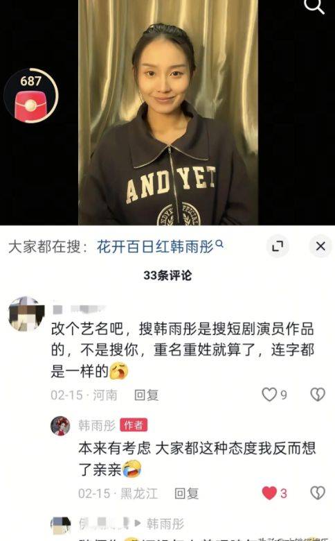 千金谋》,并且与曾辉作为情侣身份捆绑出演了十几部剧。在红果平台,她的粉丝量早已突破两百万,是名副其实的流量担当。当顶流粉丝发现撞名后,场面变得如同一场统一战线的战争。部分粉丝选择温柔劝诫,以提醒新人避开蹭热度的嫌疑;而另一部分粉丝则直接开起了硬刚模式,评论区充斥着改名字三个字,粗暴至极;更有甚者,粉丝们开始冷嘲热讽,指责新人刚出道就摆架子、永远无法成名。仔细一看,这些评论的账号,头像多是顶流韩雨彤的照片,网名则是粉丝圈专属的昵称,显然是精心组织起来的群体行为。