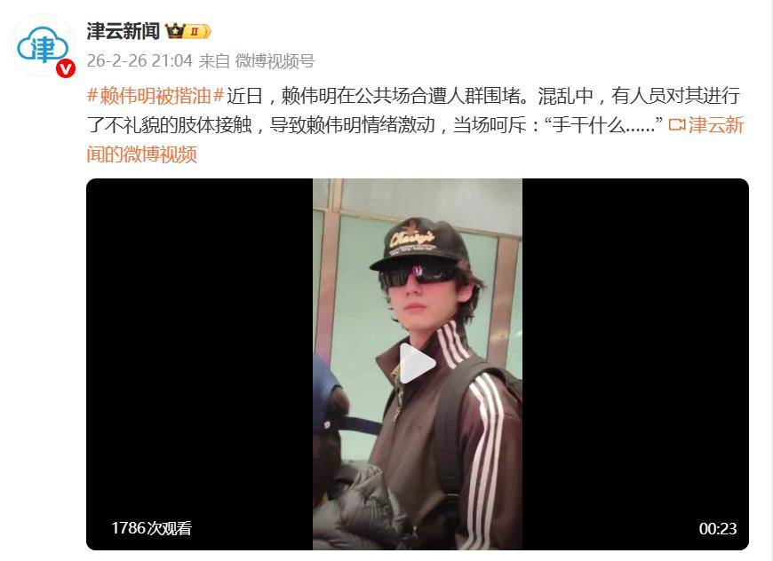 2月26日,赖伟明在机场等公共场所被大量人群围堵。现场画面显示,场面一度失控,在拥挤和混乱中,有多人多次伸手触摸其身体,甚至出现了被陌生人强行搂抱的过界行为。这已远非普通的粉丝接机,而是演变成了一场令当事人极度不适的肢体骚扰。