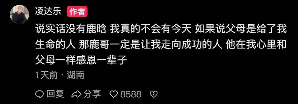 2022年的一天,某人随口说了一句,凌达乐长得有点像『鹿晗』。正是这句玩笑话,彻底改变了他的命运。他把自己的网名改成了鹿哈,化上了模仿『鹿晗』的『妆容』,甚至连发型也努力往『鹿晗』的风格靠拢。
