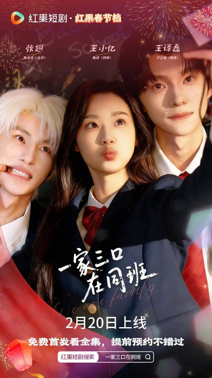大年初四开播的重生校园群像短剧《一家三口在同班》由王小亿、张翅、王译磊主演,讲述了六十岁的离异夫妻重返18岁与儿子成为同班同学,在以同龄人身份陪伴儿子的过程中解开误会、弥补遗憾,是一个关乎爱情与亲情的救赎故事。