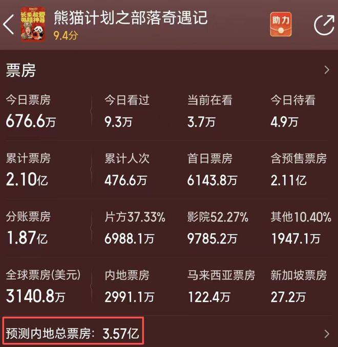 熊猫计划2》在豆瓣上的评分尚未公布,但第一部仅有5.5分,第二部的质量也只能算是平平,预计很难超越这个分数。虽然题材和风格在春节档有一定的受众基础,但影片的目标群体过于模糊,最终导致票房惨败。如果没有足够的实力,还是不要轻易打着合家欢的旗号吸引观众,像《