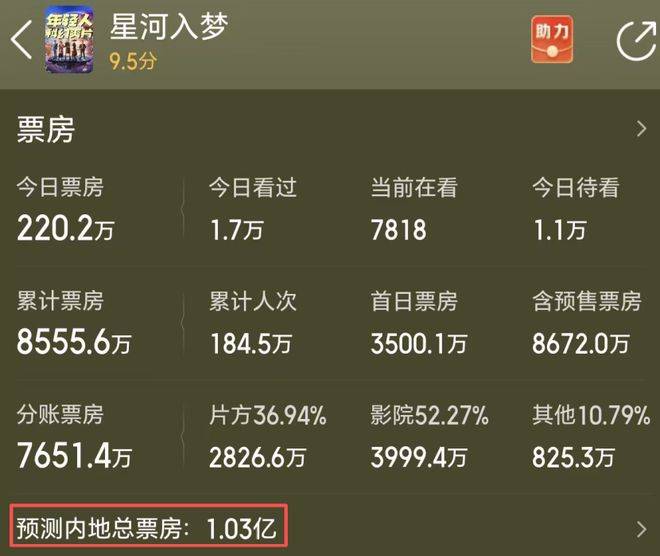 星河入梦》——上映九天后,累计票房仅有8000多万,几乎没有存在感,注定会被这个档期无情地淘汰,翻身的机会微乎其微。