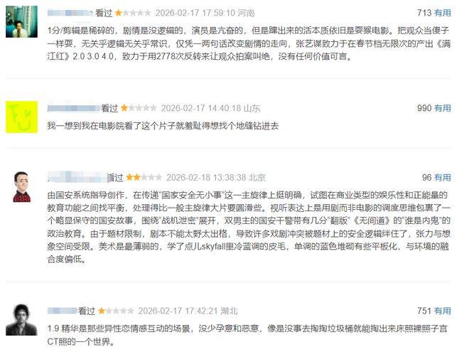 截至目前,本年度最令人失望的电影,依然是由『张艺谋』导演执导的《惊蛰无声》。这部影片的阵容可谓强大,『张艺谋』亲自执导,且汇集了『易烊千玺』、『朱一龙』、『宋佳』、雷佳音、『杨幂』、『张译』、『刘诗诗』、段奕宏等一众实力派演员。影片的故事围绕国家安全展开,讲述了我国一项重要情报被泄露,国家安全小组迅速展开调查。然而,随着案件的深入,连续的抓捕行动遭遇了重创,调查的矛头竟然指向了国安小组内部。在这场信任与背叛交织的漩涡中,一场无声的较量悄然上演。