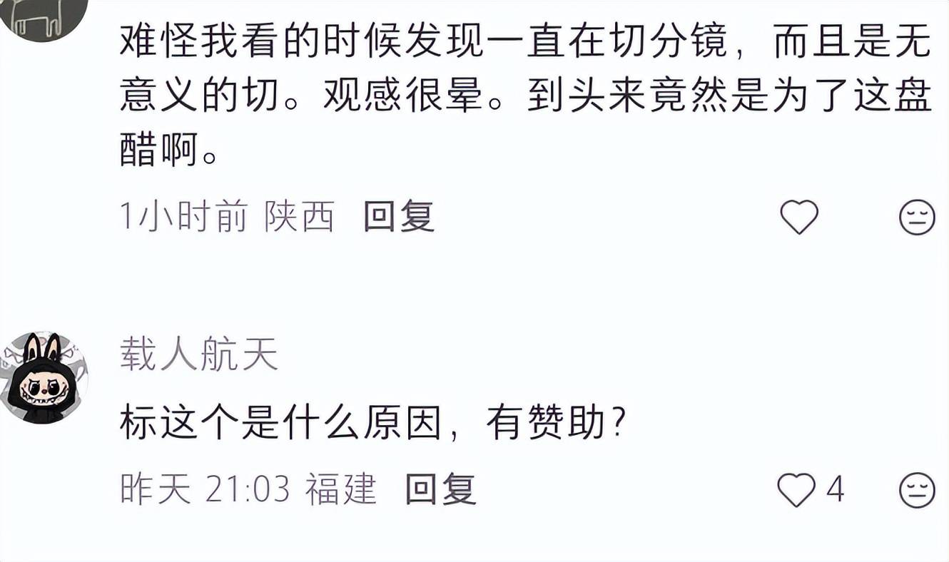 这句话的出现让网友颇有点摸不着头脑:用苹果系统剪视频很正常,也是『张艺谋』剪辑师惯用的方法,但根本没必要专门打个字幕列出来吧?