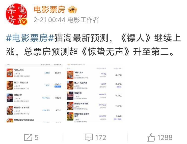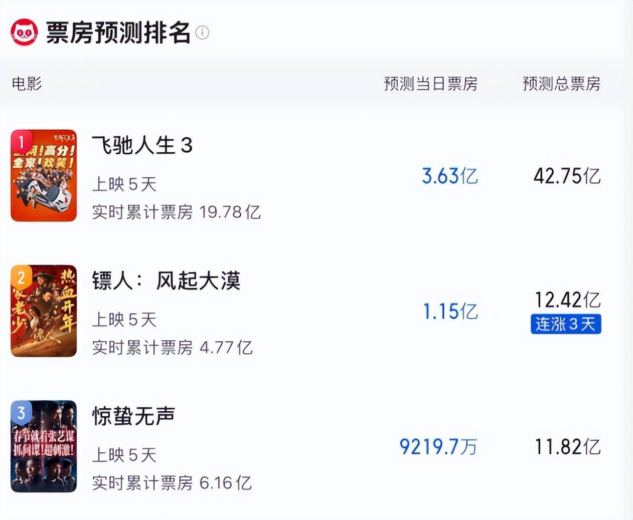 谁能想到春节档都快过完了,票房格局还能发生变动,《镖人》赶在最后两天逆袭成功,票房不再倒挂,和《惊蛰无声》拉开了差距。