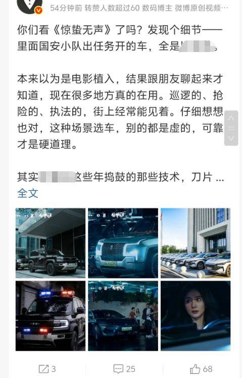 电影上映后,很多科技大V都发了类似的通稿,暗吹电影里的车,每一辆国产车都有名有姓。