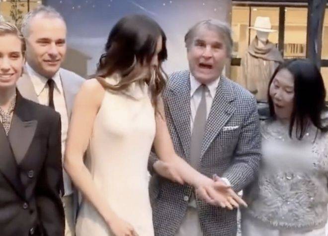 本来这么大年纪又是做时尚的人,更应该有着时尚绅士分度,但是他对谷爱凌举动却毫无分寸,一直被这样搂着,谷爱凌的笑容有些僵硬牵强,眉头也微微有些紧皱,