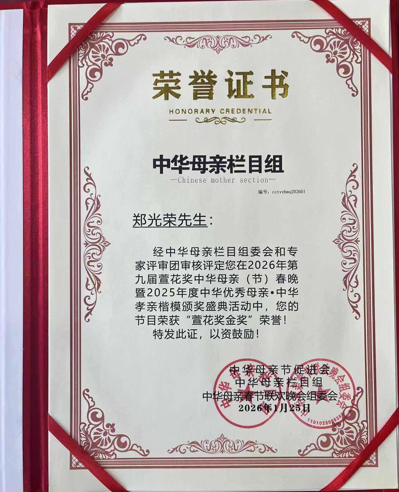 • 2026中华母亲节联欢晚会“萱花奖金奖”