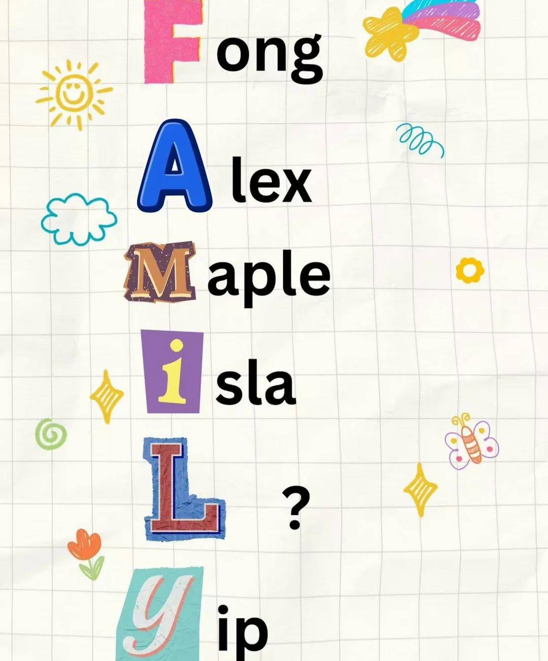 而方力申為愛女Isla改中文名「方愛嘉」,背後亦有含義:「揀『愛』字係因為我屋企房間門口有兩幅書法分別係『愛』同『家』。對我嚟講,家庭係最重要,『愛家』係我生活嘅重心。而且『愛』嘅普通話發音又可以同Isla呼應。至於『嘉』字,係老友陳定幫師傅幫我哋改嘅,發音亦係同『家』字一樣。講到我哋嘅家庭Family,F代表Fong,A係Alex,M係Maple,I係Isla,L係未來嘅寶寶,Y係Yip,既然中英文意思都咁夾,所以就乾脆叫佢愛嘉啦!Isla愛嘉,爸爸今日嘅願望就係希望妳能夠一生平安、健康、快樂!(其他就隨緣啦)」看來方力申已準備好再追多個B!
