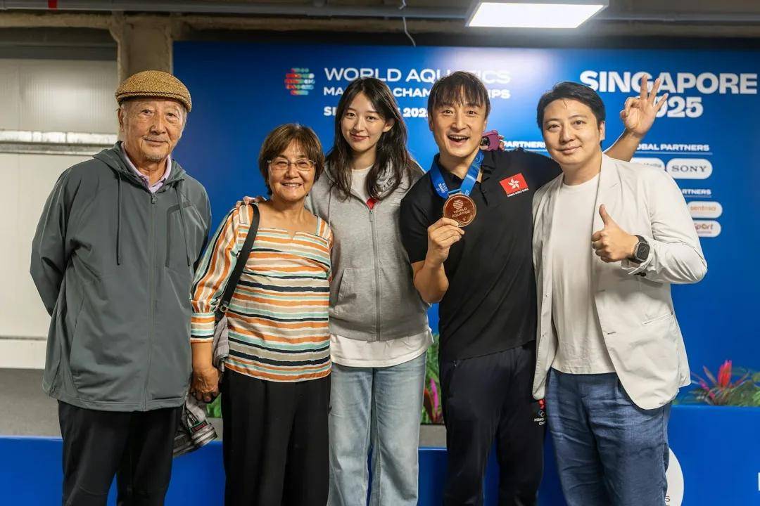 方力申去年參加「2025世界先進游泳錦標賽」奪得金牌🥇,老婆葉萱、父母及細佬都有到場見證。(Facebook@方力申)