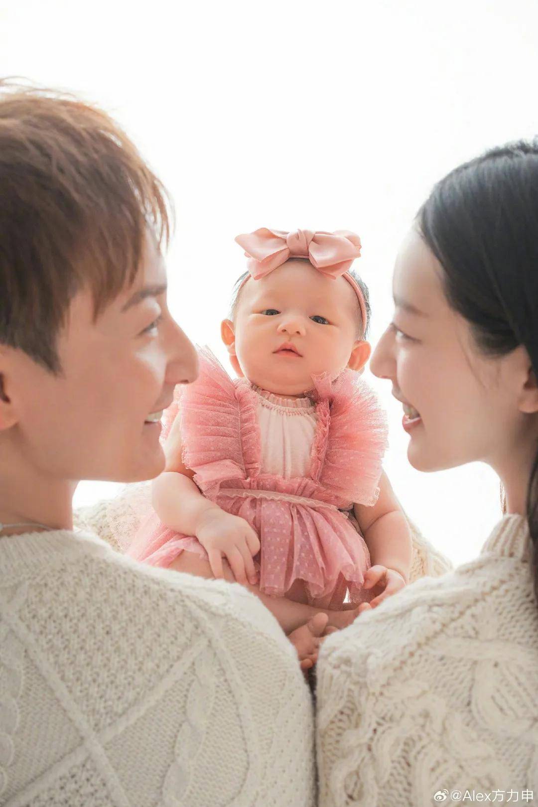 一家三口好幸福。(微博@Alex方力申)