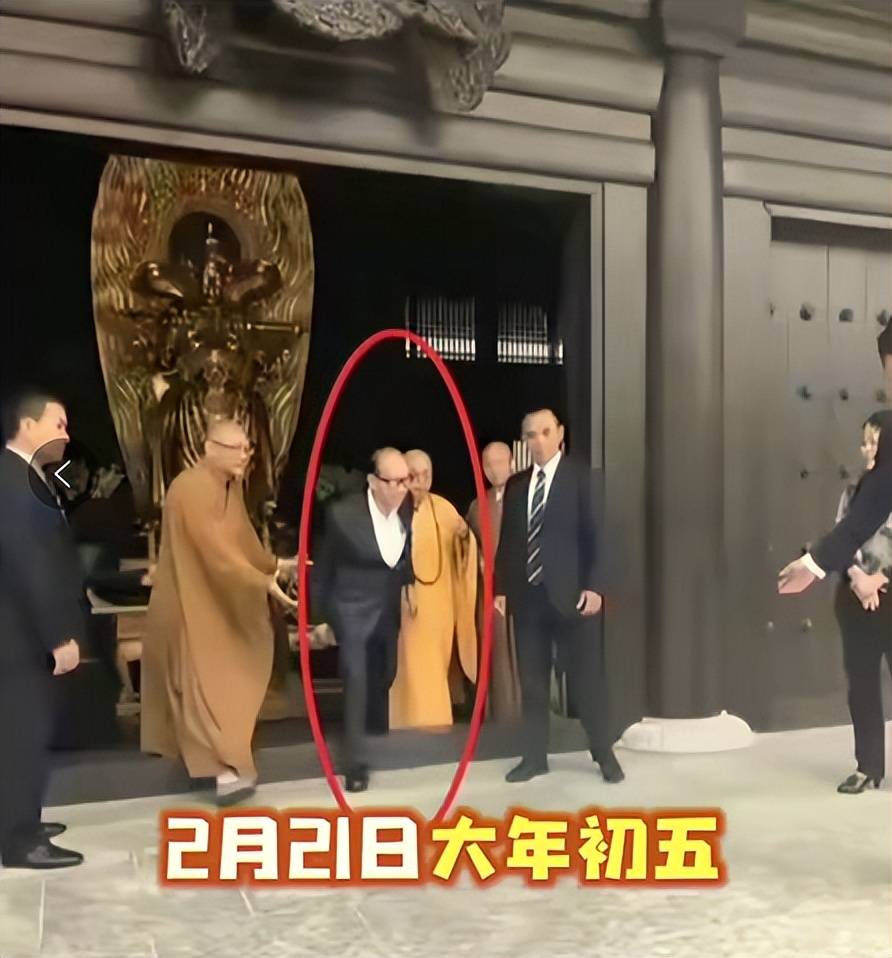 你在上图看到的是,大年初五,李嘉诚前去香港慈山寺拜财神时的场景。