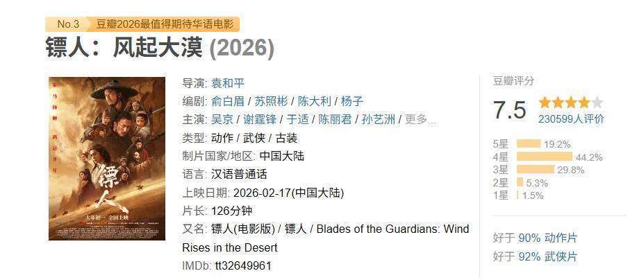 上映三十七天,《镖人:风起大漠》以8亿的票房和7.5的评分收官,虽然成绩不差,但许多观众依然觉得这部电影应该有更高的成就。
