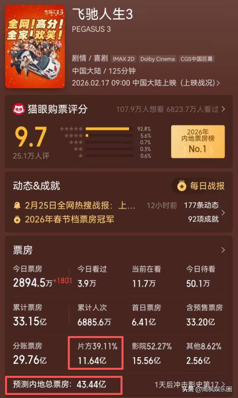 当其他影片还在为冲击10亿票房而拼搏时,《