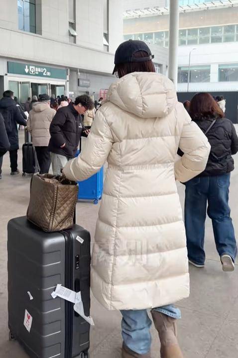 她穿着一件简单的棉袄,戴着帽子,头发散乱,素颜出镜,毫无掩饰。刚从高铁上下来,眼睛还有些肿,双眼皮看起来也有些不对劲,像是还没完全睡醒。当她谈起父母,谈到离家的感受时,语气中透着几分哽咽,那种情感的波动让人能感受到她的真挚与柔软。虽然她现在有了自己的家庭,成了两个孩子的妈妈,但在父母面前,她依然是那个会撒娇、需要依赖的孩子。看她亲密地搂着父亲肩膀的模样,那份从屏幕里透出来的幸福感,似乎让人都能感同身受。