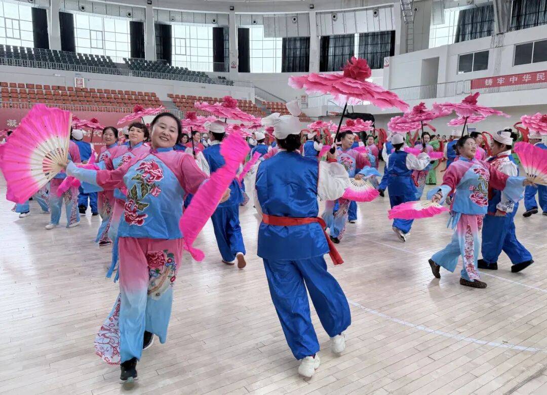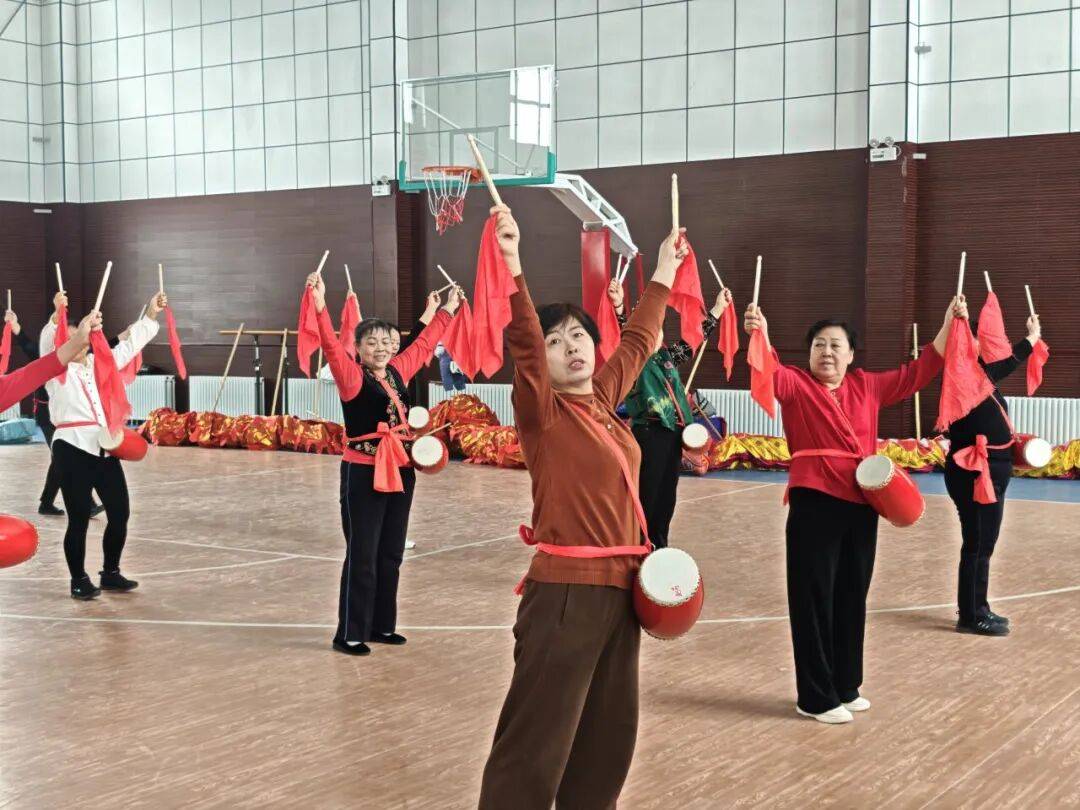 2月25日,在博乐市贝林哈日莫墩乡体育馆,参演队员们伴着欢快的音乐舞步轻盈、神采飞扬,浓浓的年味扑面而来。