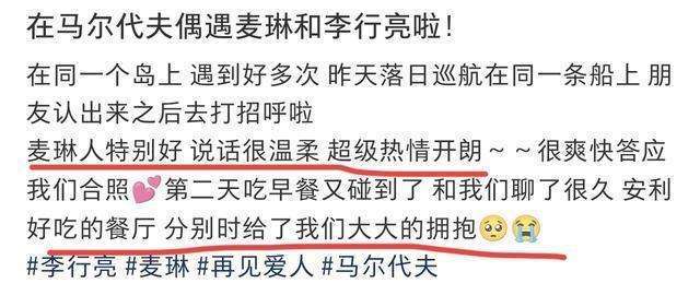 此外,还有另一位网友同样在马尔代夫遇到了这对夫妻,并拍了合影。在拍照的时候,麦琳还主动挽着网友的胳膊,看起来非常亲切,性格也的确如网友所说的那般温暖。通过照片我们也能看出,麦琳的气质变化非常明显,她现在的外形不仅变得更加美丽动人,而且整个人散发出一种难以言喻的自信与优雅。仿佛她真的进入了一个全新的阶段,沉浸在属于她的幸福之中,而李行亮看起来也完全被她的魅力所吸引。