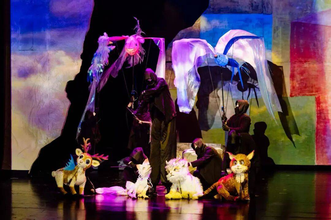 木偶是这场演出的绝对主角🎭️。共工、毕方、九尾狐、应龙……数十种神兽木偶形态各异,在演员指尖活灵活现。