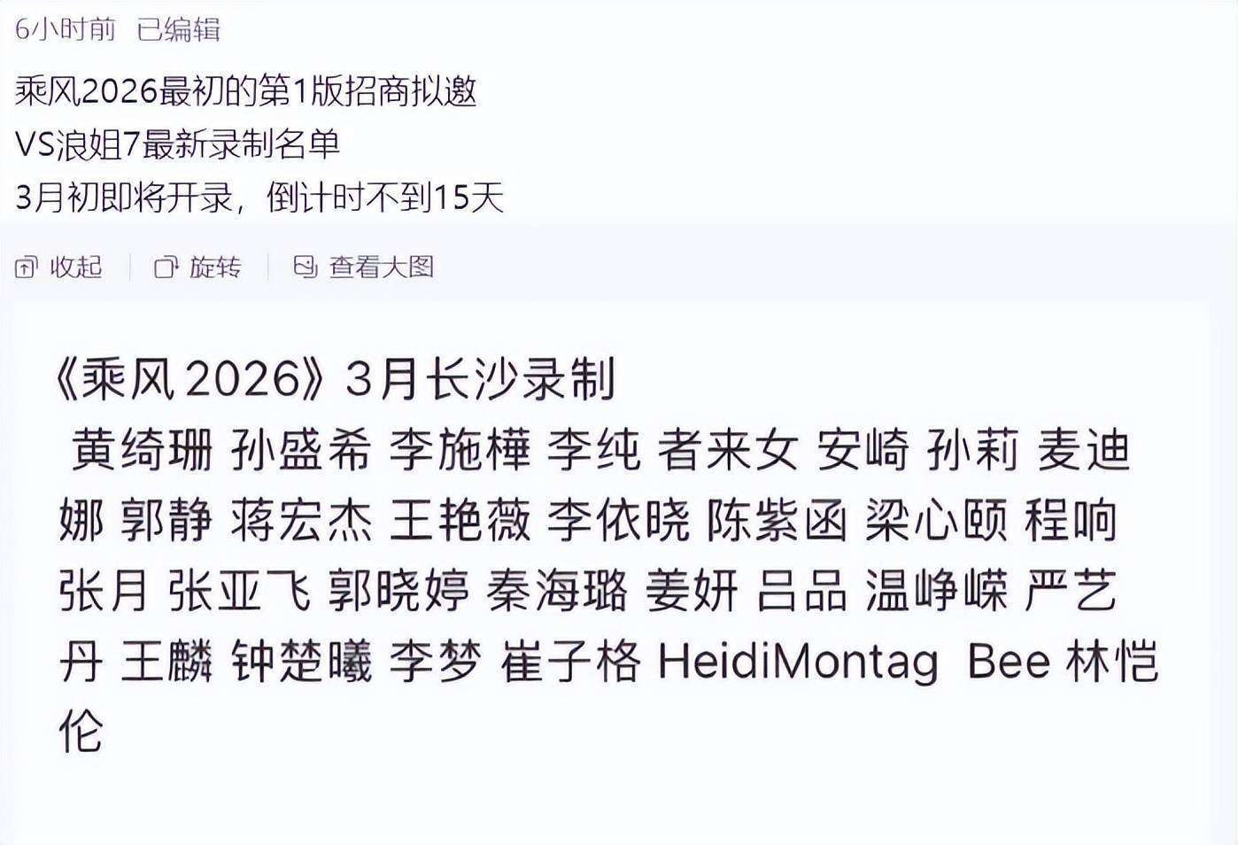乘风2026》将在三月初开机,这个时间点曝光的名单可信度相对最高。让我们逐一看看可能亮相的姐姐们: