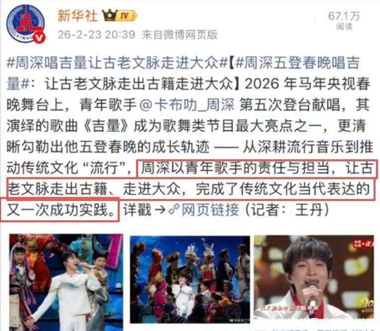 真是没想到,99小常识那简短的45字点评,竟让无数中年老粉瞬间感受到震撼!2026年马年春晚刚刚落幕,官方并没有单纯地赞美『周深』的嗓音如何仙气十足、技巧如何稳固,反而更为赞赏的是他将古老的文化血脉通过歌声传递到了普通百姓的心坎里。听上去这话虽然正式,但细细琢磨,却满是温情:一个95后,凭借自己年轻人喜爱的方式,将那些逐渐被遗忘的老歌重新唤醒,带回了大家的生活中。