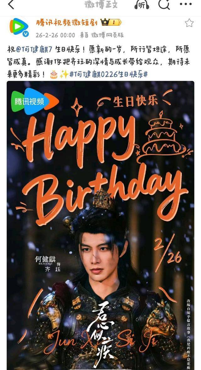 2月26日的零点刚过,微博热搜的底下悄无声息地冒起了一串何健麒0226生日快乐。虽未一跃冲进热搜前五,但这条信息却如温水煮茶,悄然扩散,层层弥漫。朋友圈里有朋友截图转发了腾讯视频微短剧的官微,那条说:齐钰的每一次低头、转身、沉默,都被你演成了呼吸。后面跟着一个蛋糕的emoji,简简单单没有感叹号,反而让人觉得更加真挚、沉静。接着,爱奇艺微剧场在早上10:17发出了那句温暖的祝福:中意是你,顺遂是你。配图是何健麒在《婚后再心动》剧组里,穿着衬衫、卷起袖子的侧脸抓拍,衬衫的第三颗纽扣没扣上。评论区里,有人翻出了拍摄花絮——他说,自己拍雨中的告白戏NG了七次,最后一次直接倚靠在路灯杆旁喘气,头发湿透了,滴水不止。当导演喊停时,他笑着说:这下霍总该信我动心了吧。全场哄然大笑。你看,这句中意是你可不是随便写出来的,背后有着多少不言而喻的心动。