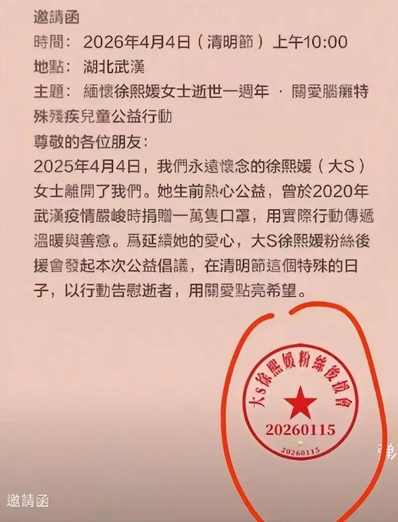 但这个爱心公益互动,到底是不是真的呢?虽然发起者做了一个像模像样的邀请函,甚至还有大S『徐熙媛』粉丝后援会的印章,但这一切又能说明什么呢?
