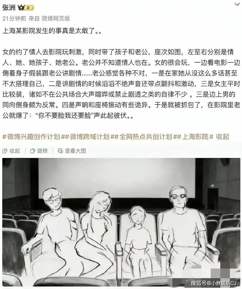 后来才知道,这瓜到底有多丢人,在影院,妻子是买了四张票,告诉丈夫自己买了三张,刚好是一家三口,妻子和丈夫之间坐着4岁的孩子,而妻子旁边却坐着她为情夫准备的座位,就这样在黑灯瞎火下,两人的做些不可描述的事情。