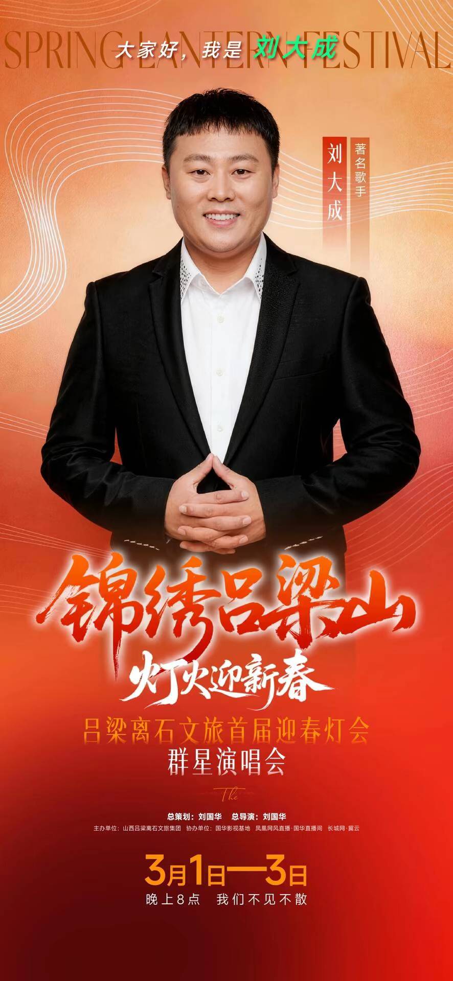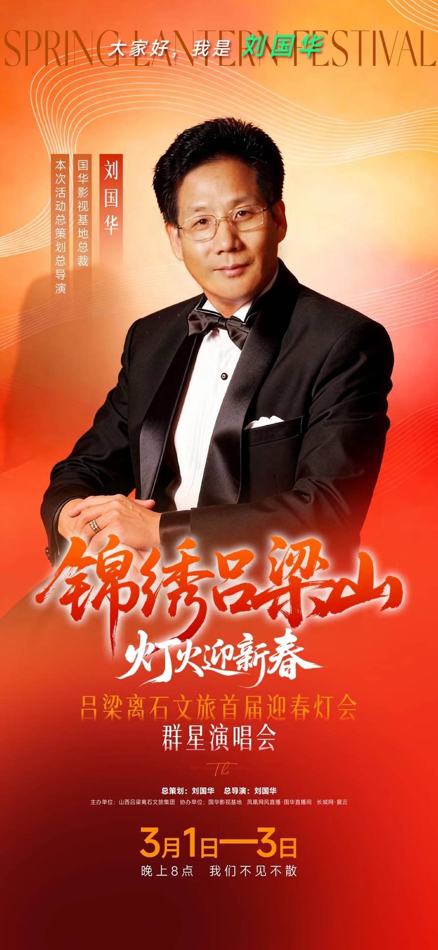 总策划、总导演刘国华也亲自登台演唱,用深情的歌声致敬吕梁大地、致敬离石人民。