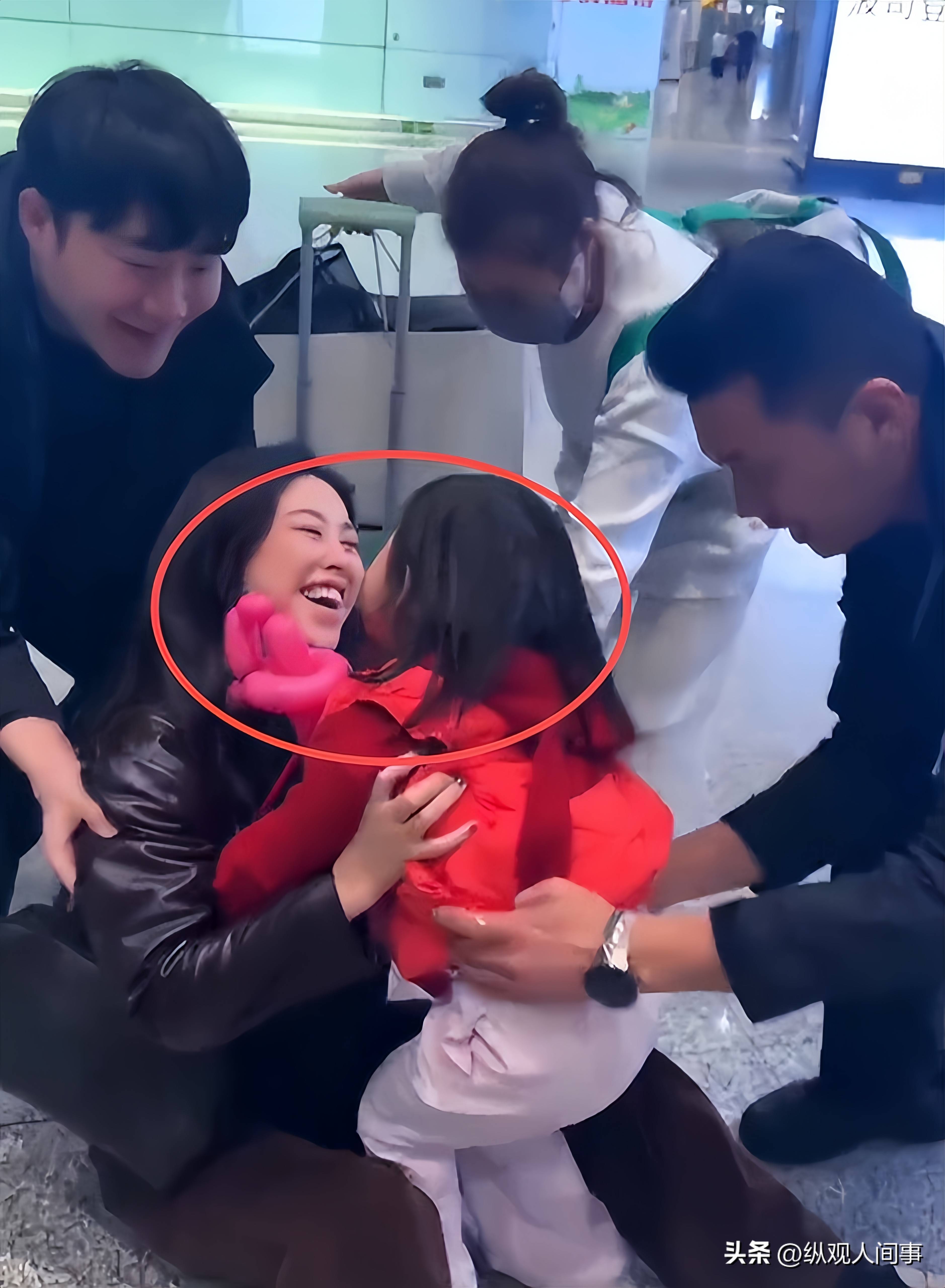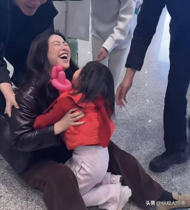 尽管朱珠穿得相对保守,小珠宝的穿着却显得朴素可爱。她穿了一件红色长袖上衣,配上浅粉色灯芯绒裤子,扎着两根小辫子。远远看到妈妈后,她张开小手,飞快地冲了过去,扑进朱珠怀里。为了接住女儿,朱珠急忙放下手里的东西,蹲下身子去抱她。可是小珠宝的冲击力太大,结果母女俩一起摔倒在了机场的地板上,场面堪称“人仰马翻”。