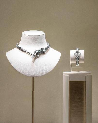 记者还在“野性自然”展区看到,猎豹的独特气韵与卡地亚动物王国相得益彰,鳄鱼造型高级珠宝项链和腕表新作在此亮相。在这里,猛虎悠然漫步,鳄鱼静默蛰伏,猎豹邂逅斑马,甚至与自己面对面,更有超出想象的珍奇瑞兽出现。