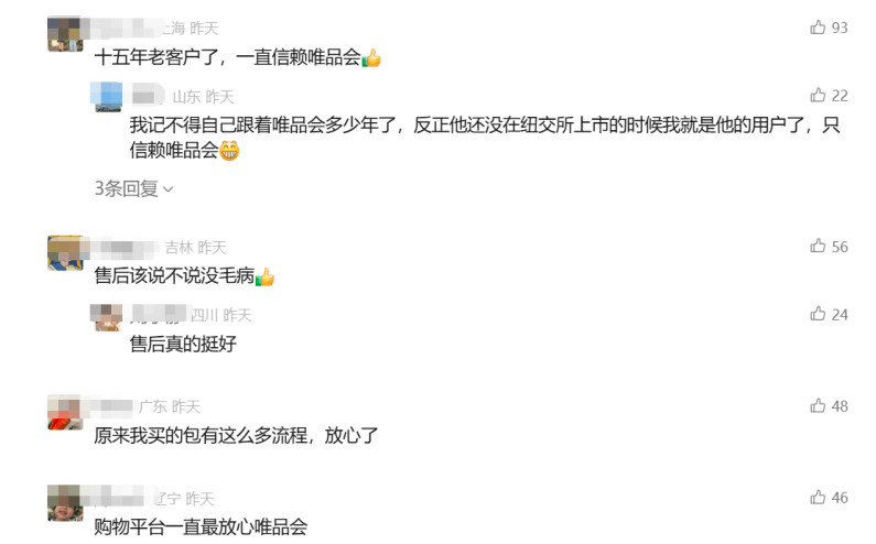 随后还看到了很多网友对唯品会的点评,好评还挺高的。