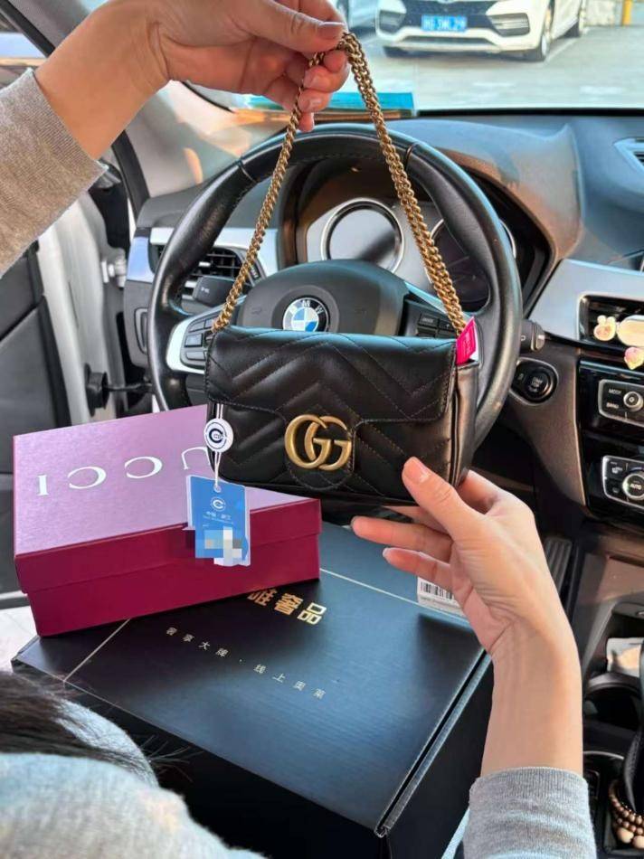 像这位富姐,家里做生意的很有钱,宝马都是她换的第二辆了。但是她这次的朋友圈文案,配的却是唯品会折扣的Gucci包包真香。还说有中检的蓝标,最近想换包的家人可以去捡便宜。
