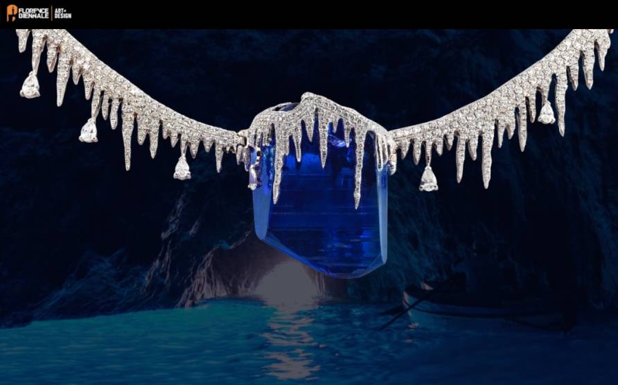 获奖作品《蓝洞》(Grotta Azzurra)诞生于对比之中,海蚀洞的清凉与静谧,与突然穿透黑暗的光芒相遇。一颗重达150克拉、未经切割的坦桑石晶体,仿佛被时间守护的圣物。围绕它的钻石与18K白金层层叠叠,像晶莹的钟乳石,在阴影中闪烁着光的碎片——那一刻,仿佛光正从黑暗中诞生。在这里,黑暗并非缺席,而是一种存在。它让光更加耀眼,赋予了光的出现以意义。