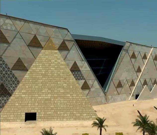 更妙的是,博物馆的中轴线和胡夫、门卡乌拉金字塔精准对齐,站在馆内的玻璃幕墙前,就能直接望见远处的金字塔群,古代文明和现代建筑隔着2公里“对视”,这种感觉别提多奇妙了。