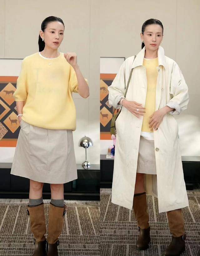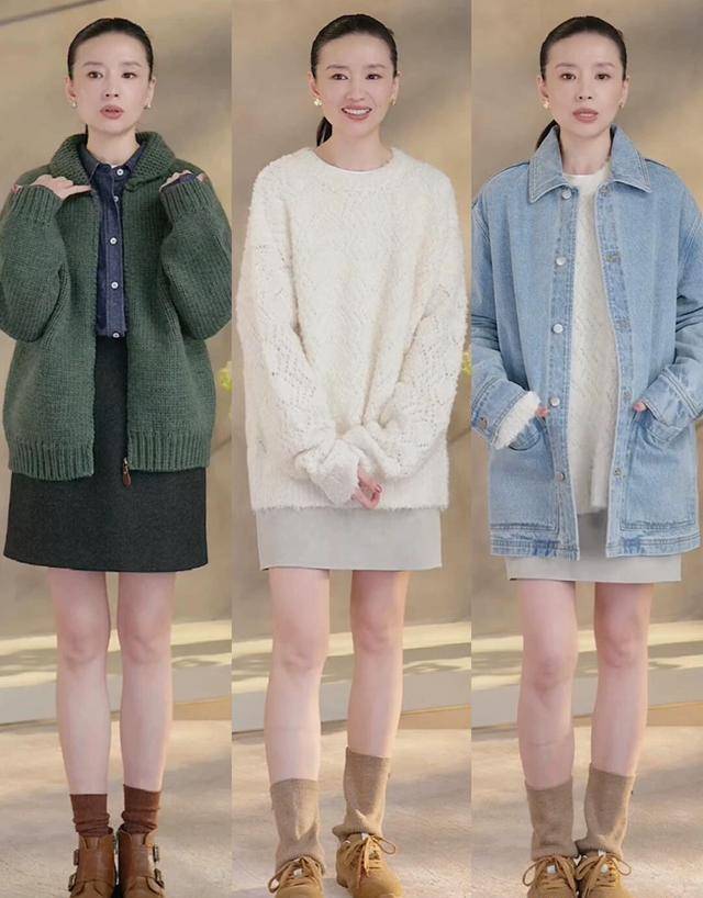 董洁昨晚在直播间给出了另一种答案——她选择了一件烟灰色的羊绒高领衫,搭配同色系的羊毛锥形裤,再穿上一双奶油白的乐福鞋。在短短三分钟内,她换了三次外套:燕麦色短款风衣、炭灰色长款呢大衣、焦糖色羽绒马甲,却像变魔术一样,将“保暖”演绎成了“线条、呼吸和质感”。屏幕上的弹幕不断刷过的不是“多少钱”,而是“原来冬装可以这么瘦、这么静”。