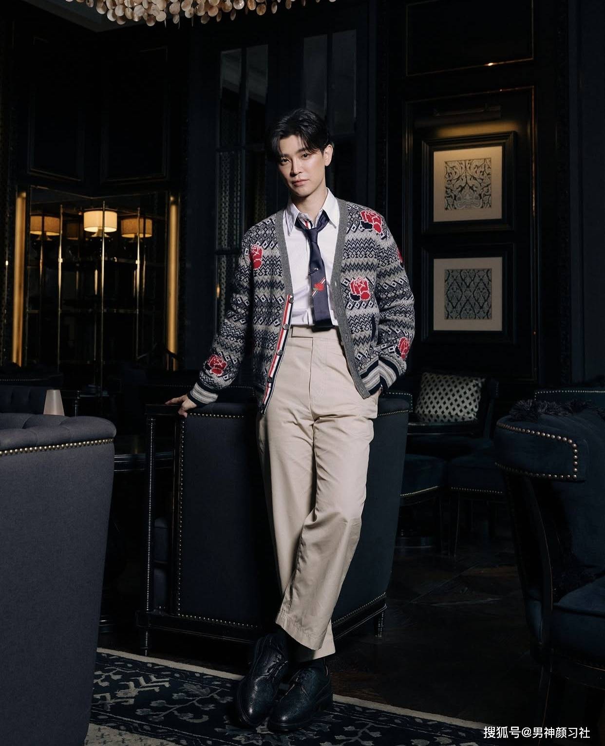 白衬衫是tie的核心单品之一,但他几乎不会单穿,而是总会叠加有设计感的开衫。尤其是花纹针织开衫,配上卡其色裤子,瞬间就把那种精致少年的气质拉满。