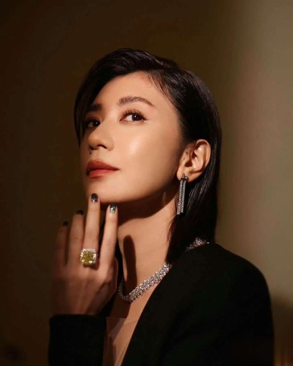 在浅色背景前,贾静雯斜倚墙壁,短发和红唇搭配着那条深V开衩的长裙,整个画面都充满了成熟的魅力。她佩戴的同系列钻石首饰,手链、耳环和项链都极其精致,而她却能将它们轻松演绎得如此自然,仿佛这些珠宝只不过是她个性的一部分。这种驾驭珠宝的气场,并非一蹴而就,而是她多年来积淀出的自信与优雅。