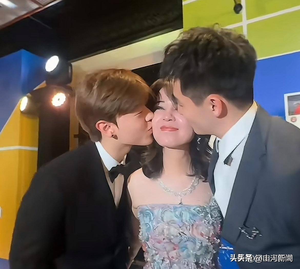 随着晚宴的进行,于文红特别安排了一段“温情环节”。在镜头聚焦下,男友轻俯身,在她左侧脸颊上留下一个温柔的吻,紧接着,大宝按照母亲的指示,在她右侧脸颊也亲吻了一下。此时,于文红的嘴角松弛开来,笑容温暖如月,眼睛弯成两道月牙,显现出被两代人围绕的幸福感。她轻拍男友的手臂,又揉了揉儿子的头发,试图营造出和睦的氛围。