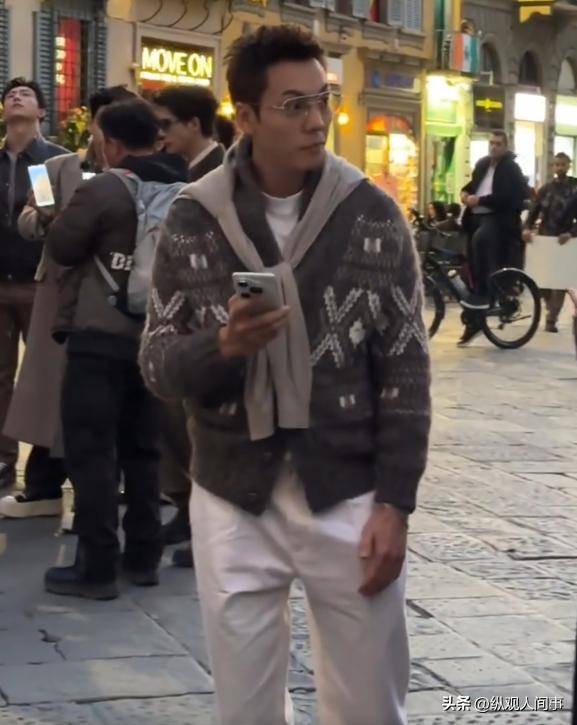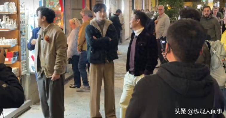 接着是范丞丞的出现,一秒钟让人觉得“贵族公子感”完全不在话下。你可能会以为他把佛罗伦萨的街头变成了自己的个人秀场。他穿着高领毛衣,外面搭配黑色马甲,虽然大家都穿着类似的毛衣,但范丞丞的穿法看起来格外有质感,侧脸的下颌线清晰可见,简直帅到让人窒息。那张路人拍到的生图中,他在人群里异常突出,个子高挑,腿长近乎120cm,走路时背挺得直,随便一转头就是一张充满氛围感的照片。