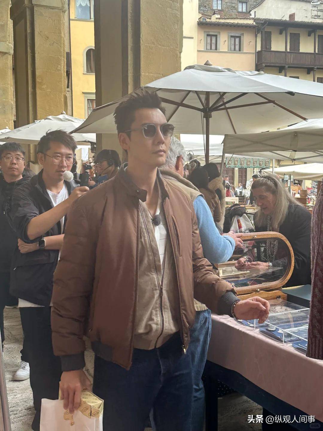 相比之下,陈伟霆则展现了一个令人惊艳的反差。他刚刚宣布当爸的消息后,反而显得更加迷人。他穿着一件浅棕色夹克和蓝色裤子,单手插兜,头戴墨镜,头发梳得整齐,甚至不再留碎发,走在石板路上,竟然被外国游客误认作奢侈品牌的代言人。从前,陈伟霆总是走“酷帅”路线,穿皮夹克、染发色,舞台上又唱又跳,浑身都是青春气息。而现在,他变得更加成熟稳重,穿搭也低调了不少,反而展现出独特的魅力。当他和沈腾同框时,沈腾看上去像个大妈,站在旁边的陈伟霆则流露出“酷帅”气质。看来,其他人当爹总是略显憔悴,而他当了父亲之后,整个人都焕发出新的光彩,孩子真的是他的“福星”。