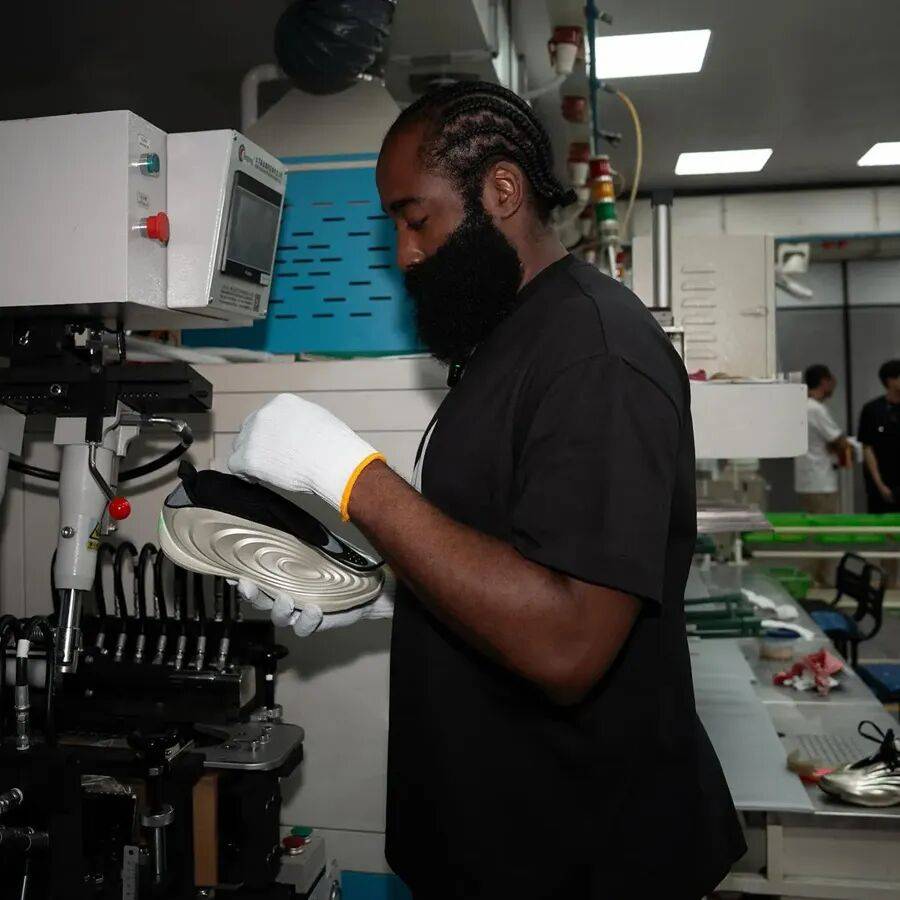 在今年 8 月份的哈登中国行期间,他本人前往球鞋工厂参观,了解自己签名鞋的完整生产过程,还亲手参与了 adidas Harden Vol. 10 的制作过程。