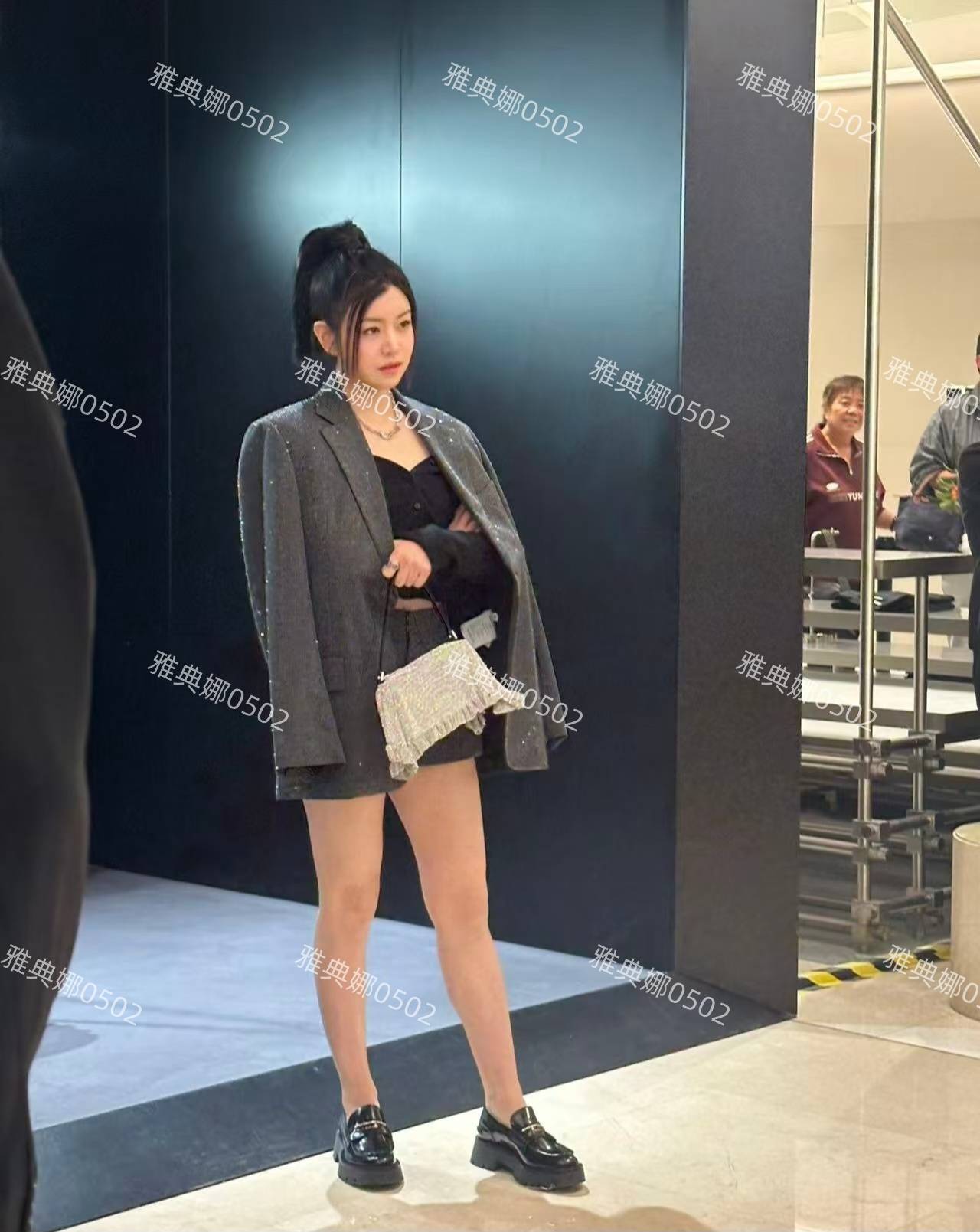 至于她穿的那件灰色绣银线西装,给人的感觉似乎并没有展现出她的个性或气场。无论是因为她本身太瘦小,衣服无法撑起,还是因为衣服本身太大,这件西装看起来就像是小孩穿了大人的衣服,虽然设计上尝试了甜美与辣味并存的搭配,却未能突出她的风格,气场显得相当薄弱。