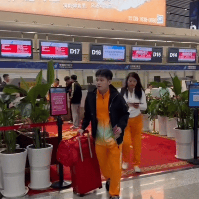 王曼昱和她的教练早上也从北京出发了。她穿着一身黑色的队服,代表的是黑龙江队。coco也从北京出发了,不过她走的是港澳台的出发口,所以她大概也是去澳门了。昨天,她从正定回到北京,今天又从北京出发,似乎没有与河北队的成员一起同行。