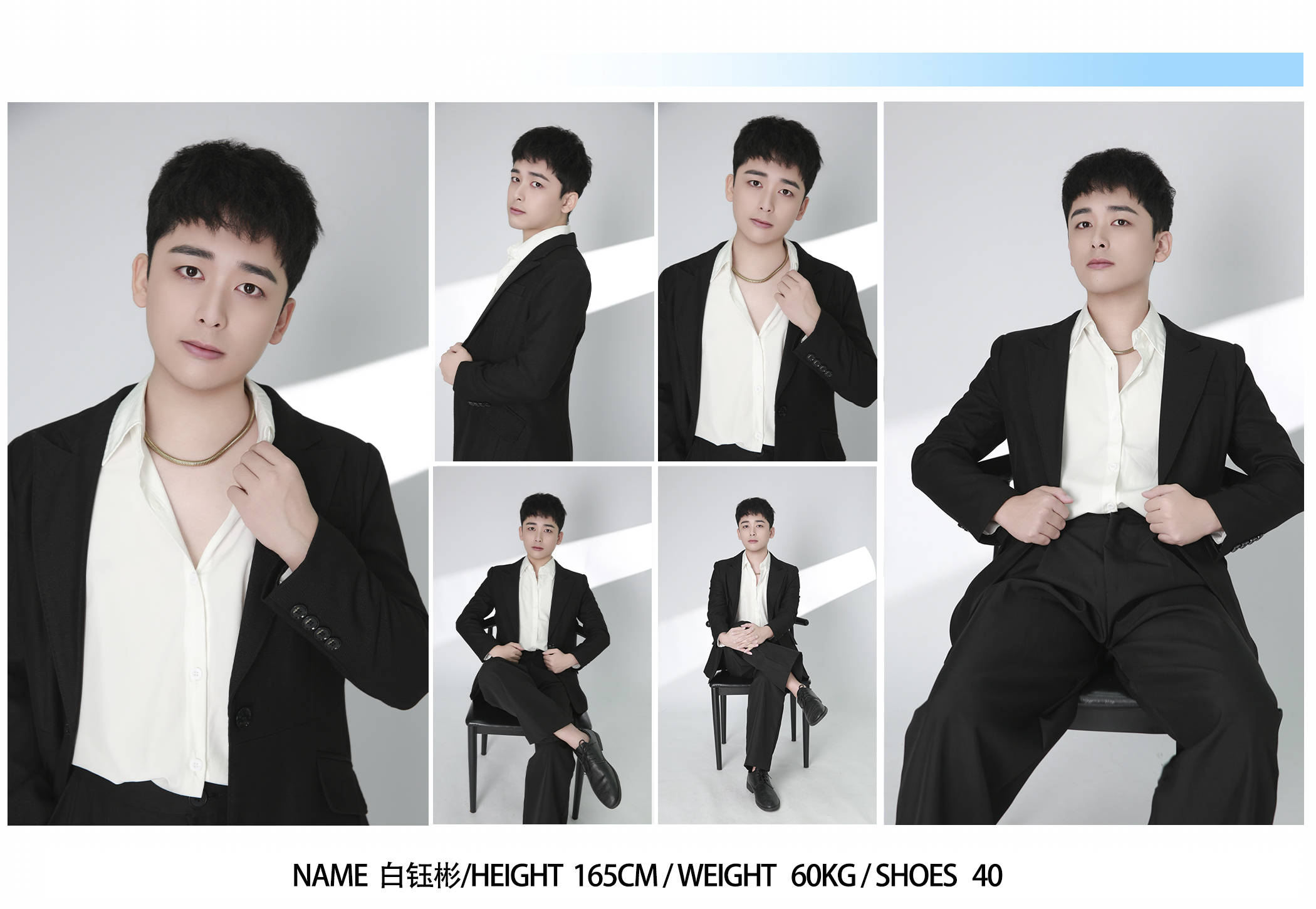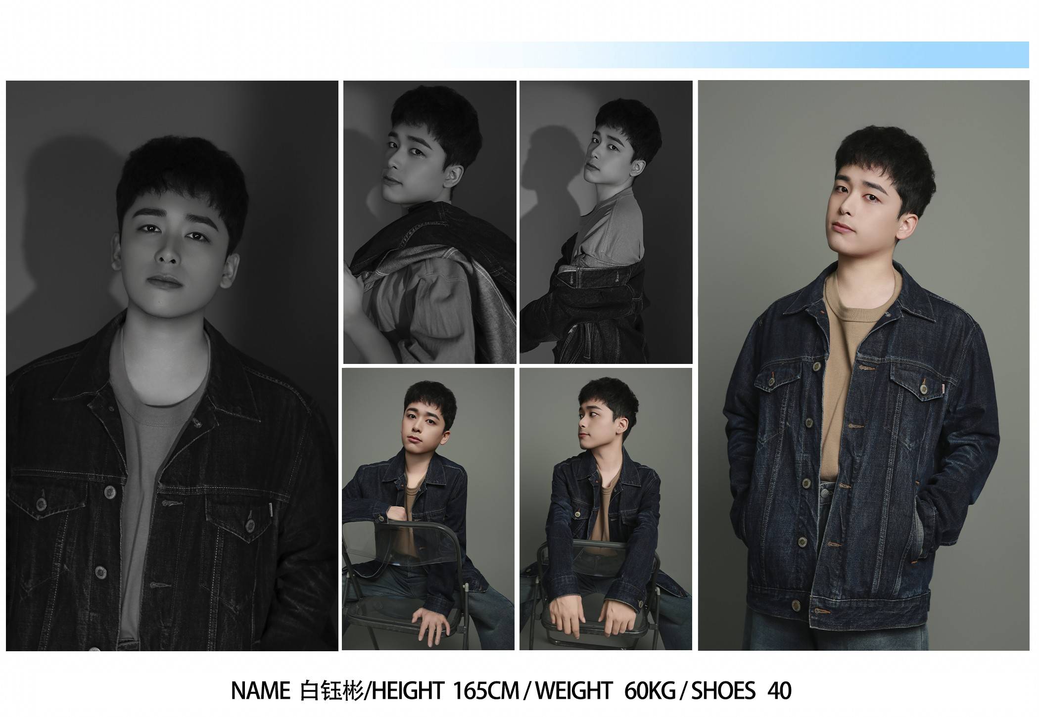 当黑色西装撞上松垮白衬衫,领口的褶皱漫不经心搭在锁骨 —— 这不是成熟男性的刻意松弛,是白钰彬身上独有的少年型张力。作为领尚艺术最新签约的新人模特,他像一块未被定义的画布:既能接住正装的克制,也能揉进牛仔的野生,连基础款 T 恤都能穿出松弛感的少年气。