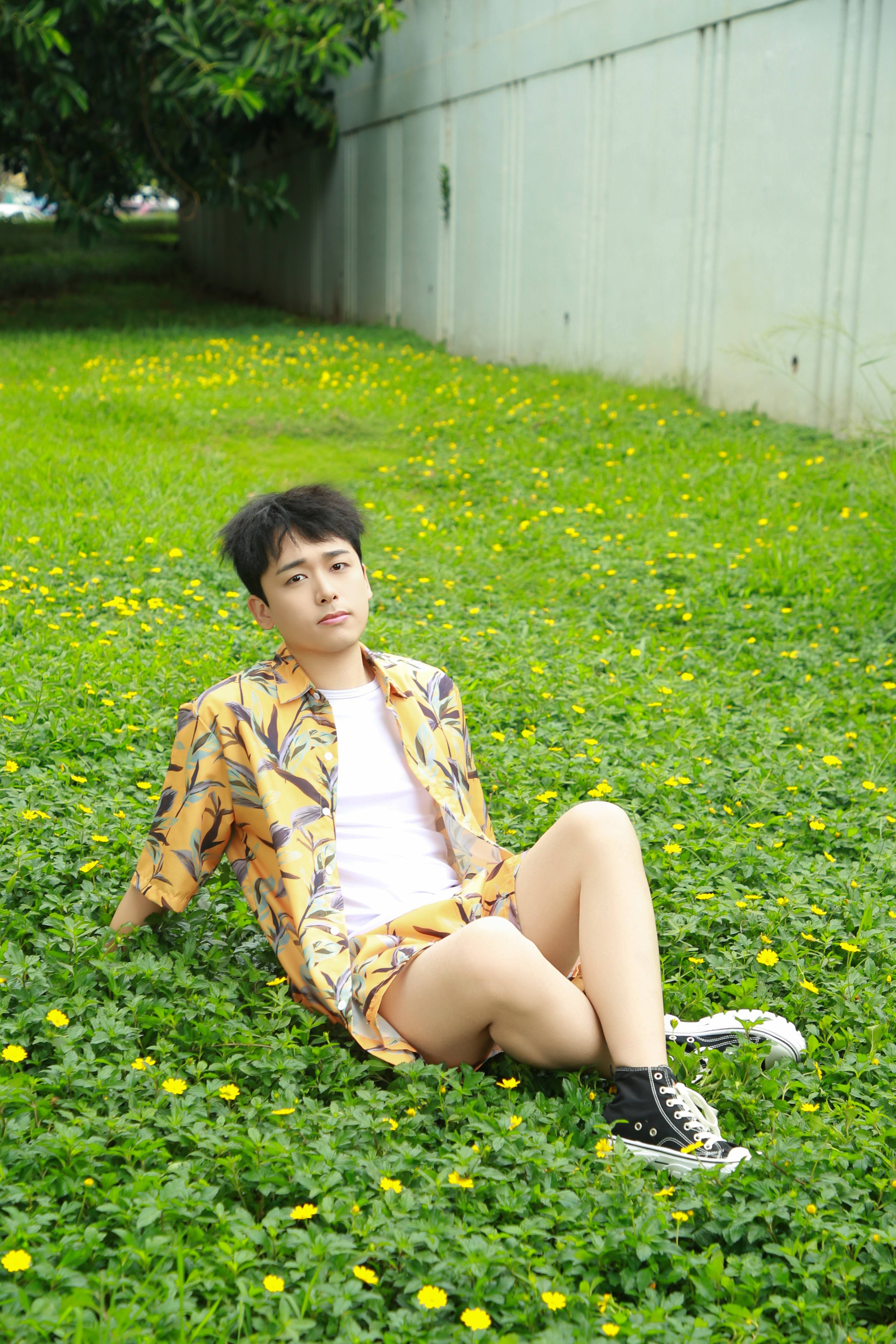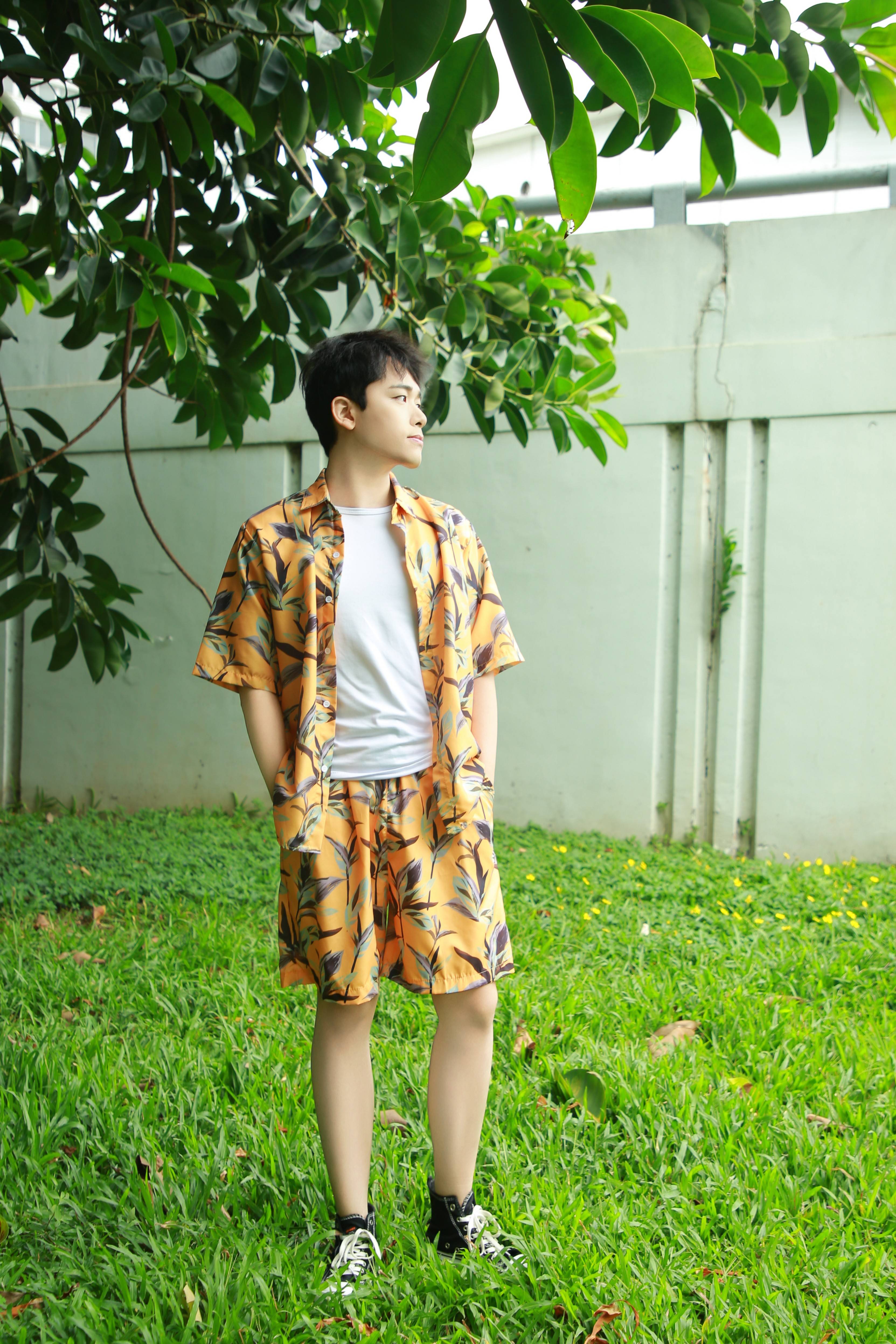 甚至连度假风的花衬衫,他都能穿出不违和的清爽。明黄色布料裹着少年的肩背,短裤松垮地贴在腿边,却没有刻意的度假感,反而像周末偷溜去公园的高中生,指尖还沾着青草的潮气。这种清爽感是他的天赋:不管多浓烈的风格,到他身上都会被滤成少年该有的样子—— 不装,不端,只是自然地站在那里,就带着正在生长的生命力。