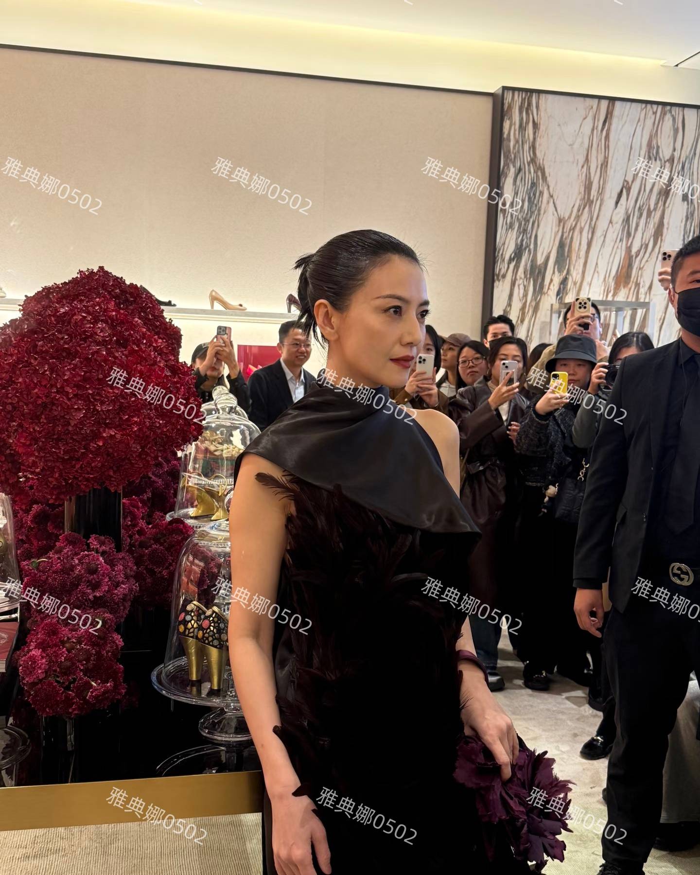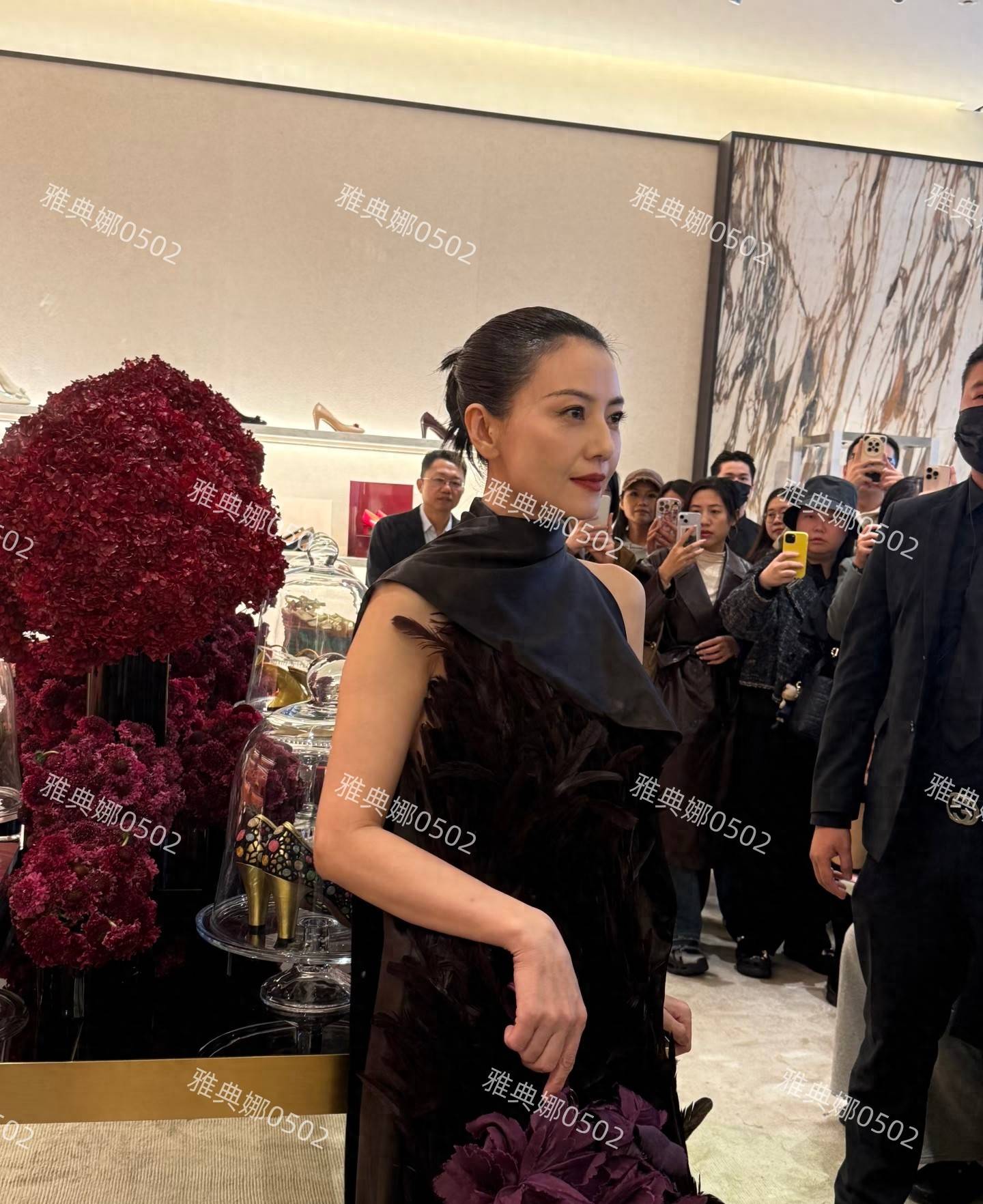 今日,高圆圆出席了在成都国金举行的菲拉格慕线下活动。与她一贯温婉柔美的形象不同,这一次,她选择了一身黑紫色羽毛礼服搭配高盘发的造型亮相。这样的搭配让人惊艳,也让大家看到高圆圆除了温柔亲和的一面,依然能够驾驭冷艳高贵的风格,展现了她的多样魅力。
