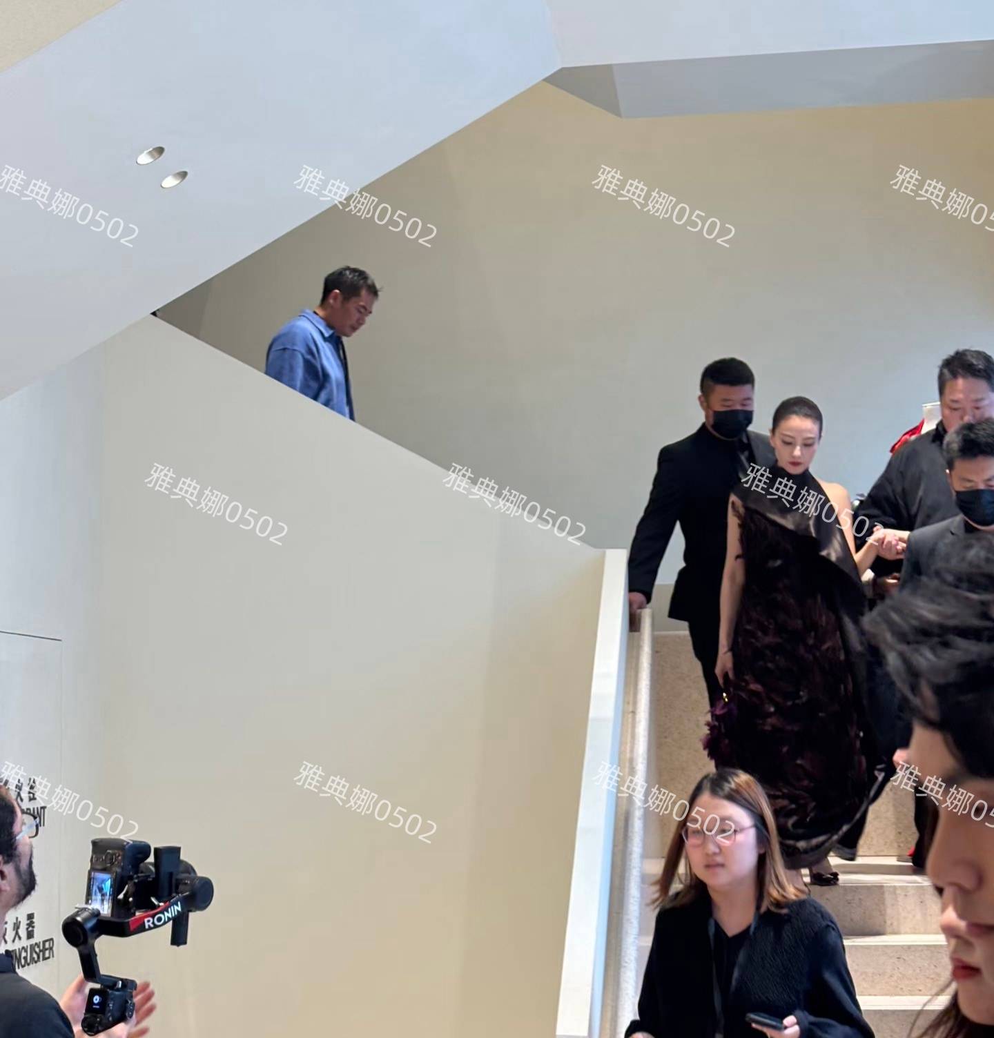 当高圆圆从楼梯上缓缓走下来时,她的气质非常高贵,仿佛一位从宫廷走出的贵族小姐。她的明星气场十足,每一次转身都不忘摆出优雅的姿势,与镜头互动时显得极为专业。高昂的下巴、挺拔的身姿,让她看起来像一只黑天鹅般的优雅,正面与侧面的镜头都呈现出她迷人的美丽和自信。