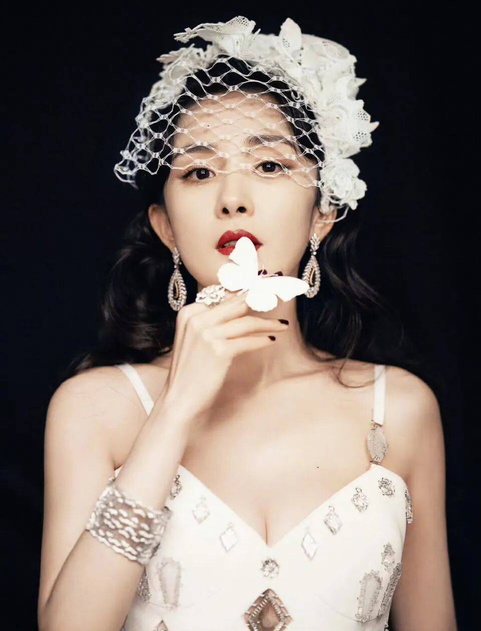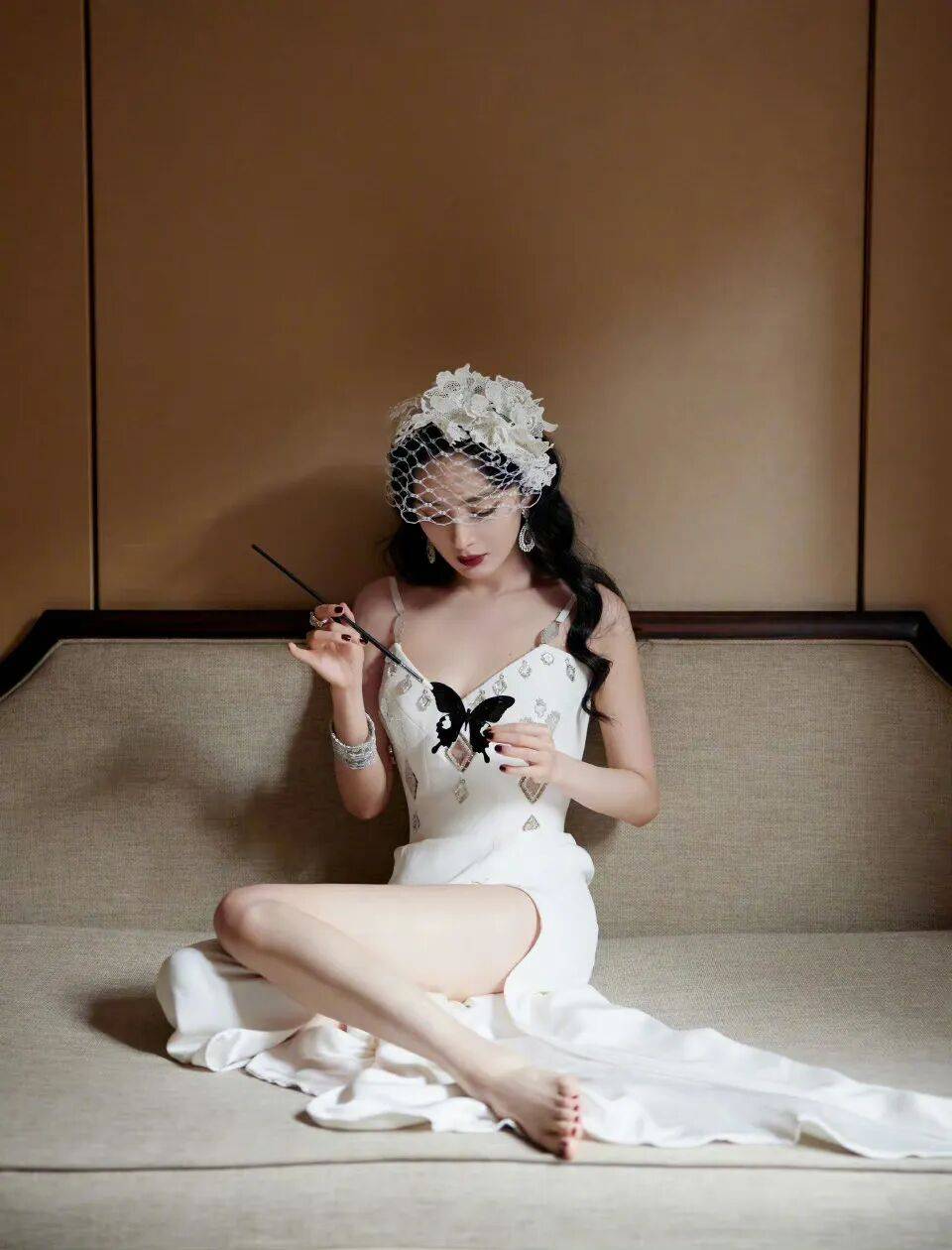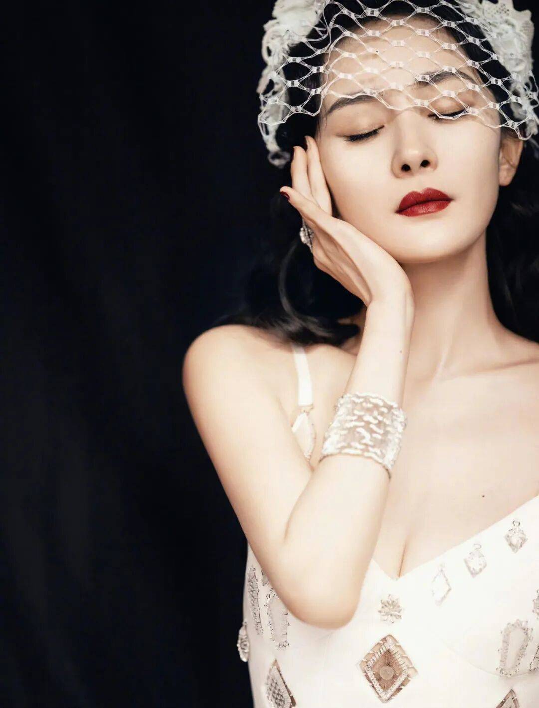 杨幂Vogue的造型真的太绝了,整个人气质优雅高贵,气质与美貌并存。白色轻纱遮面搭配红唇,复古明艳,吊带深V白裙,尽显女性优雅与性感。